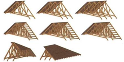 預(yù)制梁柱式構(gòu)件與木桁架:裝配式木結(jié)構(gòu)建筑中最靈活的組件,需要在現(xiàn)場進(jìn)行二次加工。木桁架是指由木構(gòu)件組成的桁架,是木屋蓋、木塔架的主要承重結(jié)構(gòu)。