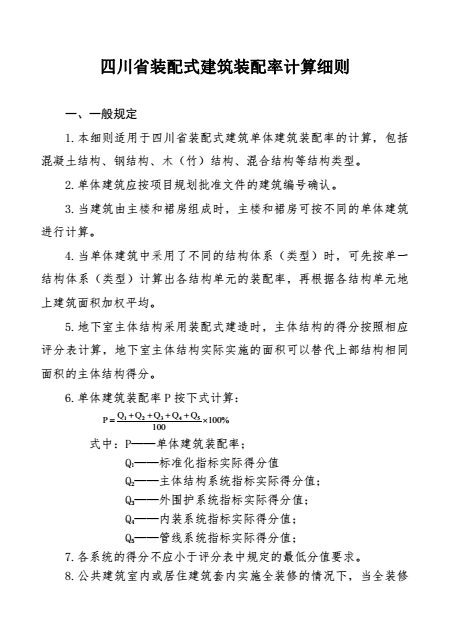 《四川省裝配式建筑裝配率計算細則》全文發布【2020.10.01起實施】