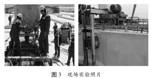 為了推動施工工地標準化建設,提高裝備自動化程度,預制混凝土梁自動振搗控制柜在京藏高速路某標段預制梁進行了試用,取得了預期效果,提高了混凝土澆筑質量,降低了生產成本。圖3為現場實驗照片。